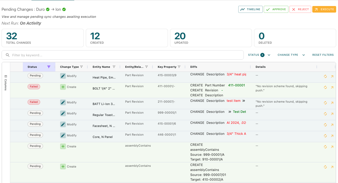If you choose to execute your Sync Changes on a schedule or on Approval, the Sync Workflows won't apply changes directly — they will generate **Pending Changes** for you to review first.